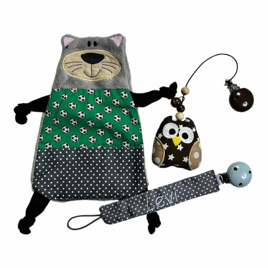 Baby-Paket 2 als Megaset zum Sonderpreis - Kinderwagenkette , Schnuffeltuch & Schnullerband mit Namen personalisierbar für Jungen und Mädchen