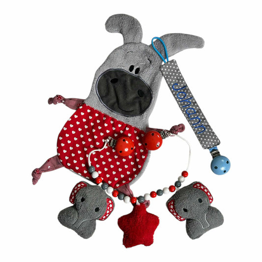 Baby-Paket 2 als Megaset zum Sonderpreis - Kinderwagenkette , Schnuffeltuch & Schnullerband mit Namen personalisierbar für Jungen und Mädchen